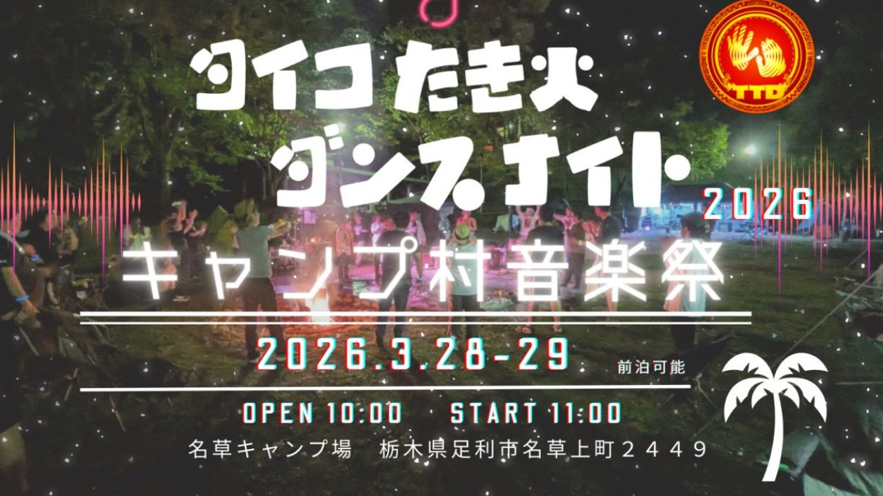 📝栃木県のキャンプ場で例年行われるVRCイベントのリアル版、音楽イベントです。 ジャンベ等の演奏に合わせて踊ったりBBQしたり、 野外演奏セッション・DJパーティのほか サウナ・プールや釣り、アクセサリ作り等のアクティビティがあります。 一日のみ参加も可能で、軽く遊びに来たい人も歓迎です。 駅から送迎の手配を行っていますが、直前参加や日帰りは自車での移動を推奨です。 参加は運営まで直接ご連絡ください。
